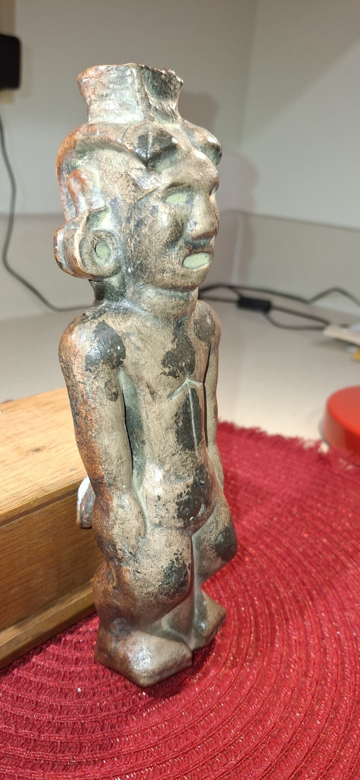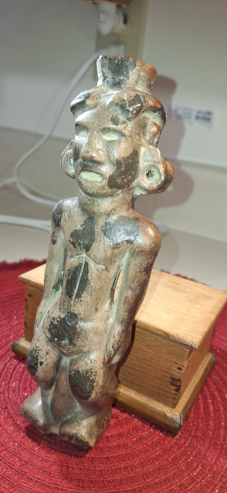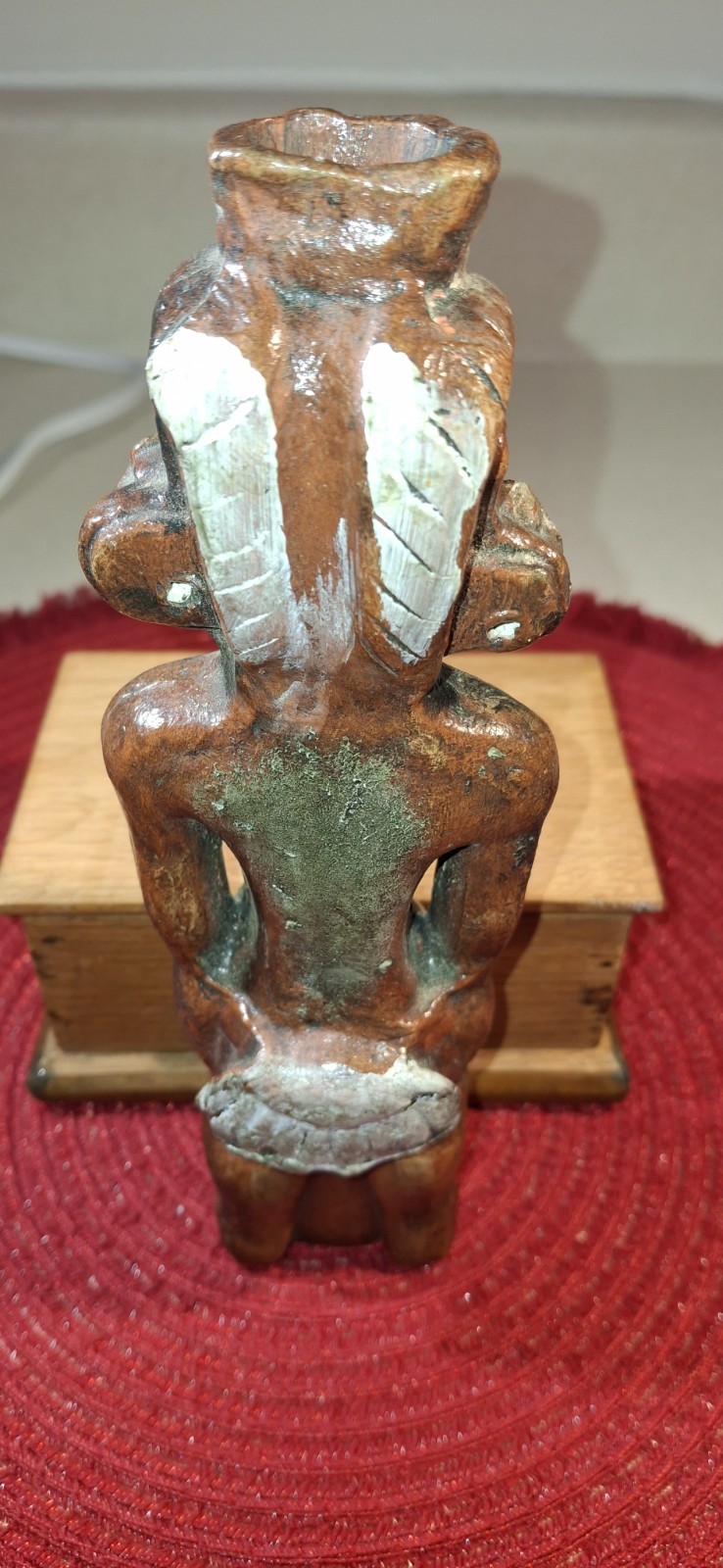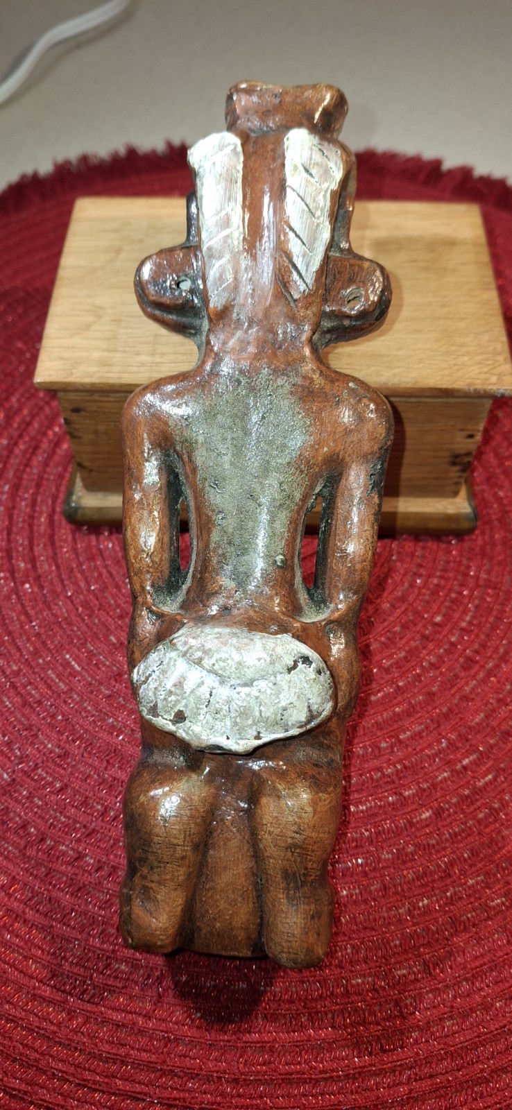 Super accurate museum replica of the famous Ohio Hopewell medicine man shaman statue. It measures 7 1/2" tall x 2 1/2" wide x 1 3/4" from front. Great x condition and makes an awesome display piece to top off your Artifact collection.