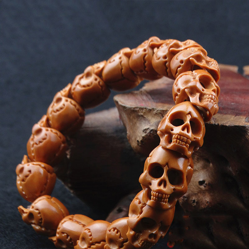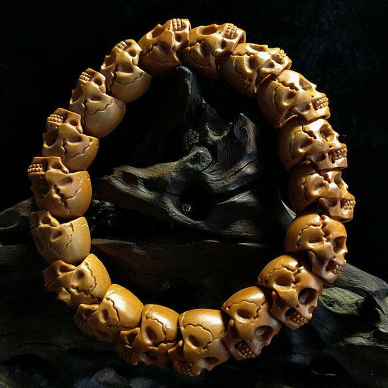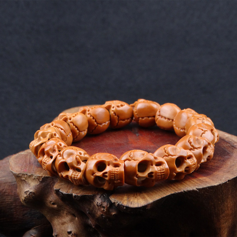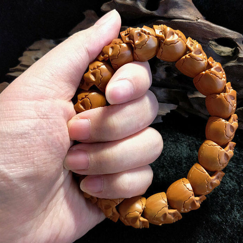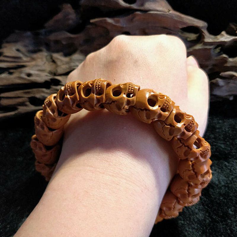 This new hand-carved skull bracelet is offered as a feng shui amulet-style piece for collectors and everyday wear. The listing notes an olivary nucleus material and a carved skull design, but no additional specifications are provided—check the listing for details on size, bead count, and exact materials. It is priced at $37.18 and ships with free shipping. Review the listing photos and seller notes for craftsmanship details and any included packaging or documentation.