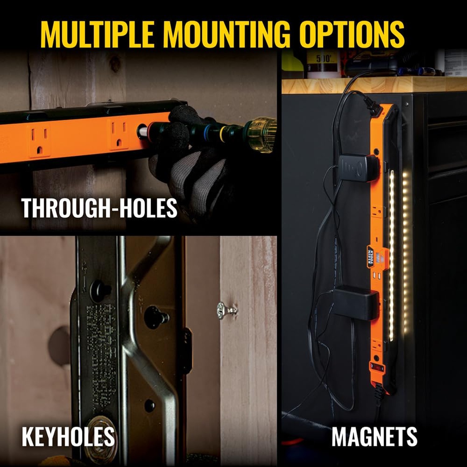 Product Details Style: Power Strip Brand: KLEIN TOOLS MPN: 29602 UPC: 092644290435 EAN: 0092644290435 Brand: KLEIN TOOLS Color: Orange/Black Total Power Outlets: 5 Voltage: 5 Volts Special Feature: Surge Protection Manufacturer: Klein Tools Part Number: 29602 Item Weight: 2 pounds Product Dimensions: 22.87 x 1.83 x 0.1 inches Item model number: 29602 Color: Orange/Black Style: Power Strip Material: Acrylonitrile Butadiene Styrene, Polycarbonate Power Source: Corded Electric Voltage: 5 Volts Item Package Quantity: 1 Plug Format: Type A or Type B Special Features: Surge Protection Batteries Included?: No Batteries Required?: No Warranty Description: See Manufacturer Website Date First Available: August 20, 2024 ILLUMINATE YOUR WORKSPACE: Power strip with down-angled LED work light to illuminate job boxes and workspaces, allowing you to easily and safely complete tasks both on the job and at home MOTION SENSING WORK LIGHT: The Power Strip Pro features a setting that automatically turns on the work light when motion is detected for a hands-free experience MAGNETICALLY MOUNT: Easily attaches to to metal job boxes and workbenches with powerful Rare-Earth magnets MULTI-FUNCTIONAL POWER STRIP: 5 grounded 120V AC outlets, 2 USB-A ports, and 1 USB-C port delivering power to tools, equipment, and other devices on the jobsite WIDELY-SPACED OUTLETS: Accommodate bulky plugs and power adapters with the 2-Foot long, low-profile power strip Klein Tools' 2-Foot Power Strip Pro helps provide efficient power distribution for your workspace. Outlets for power adapters and bulky plugs, plus a motion sensor LED light for easy tool location. Features five surge-protected 120V AC outlets, two USB-A and one USB-C port for charging phones, tablets, laptops, and more. Stay energized and organized with this versatile power strip. For more than 160 years, Klein Tools has manufactured premium-quality, professional-grade hand tools that deliver the performance, durability and precision needed to get the job done right. Our family of engineers, workers and craftsman continue to put six generations of expertise into every tool we create by using only the highest quality materials, superior workmanship, and keeping manufacturing as close to home as we can. Klein isn't just the name of our company, it's also our family name. And since we're an American company that's family-owned and family-run, you know you can count on us to be here tomorrow. Klein Tools doesn't just make great products, we make great products that stand up to the demands of the professionals who use them every day ... Since 1857.